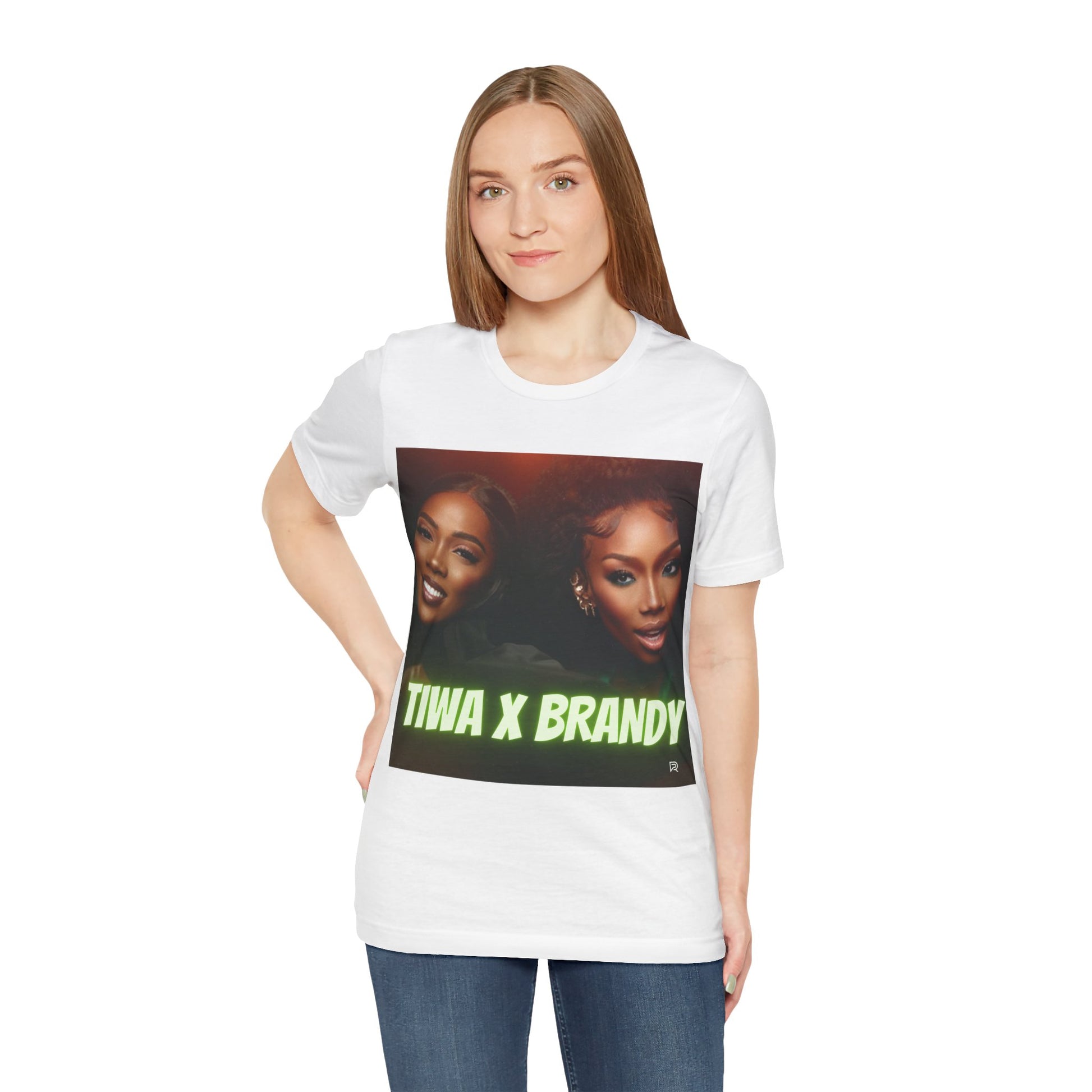 This classic unisex short sleeve "TIWA X BRANDY" tee fits like a well-loved favorite. Soft cotton and quality print make users fall in love with it repeatedly. These t-shirts have ribbed knit collars to bolster shaping. The shoulders have to tape for better fit over time. Dual side seams hold the garment's shape for longer.