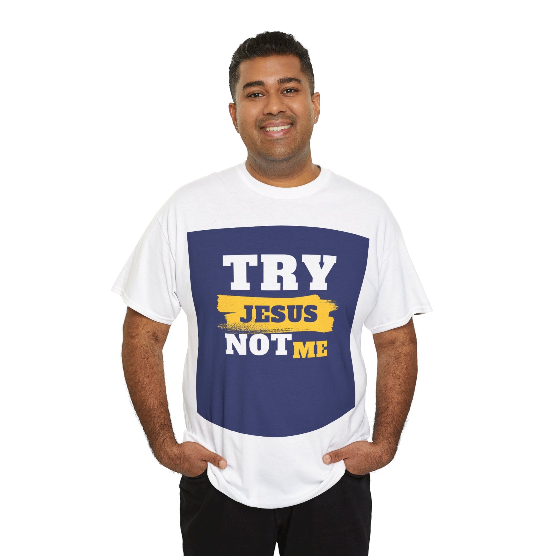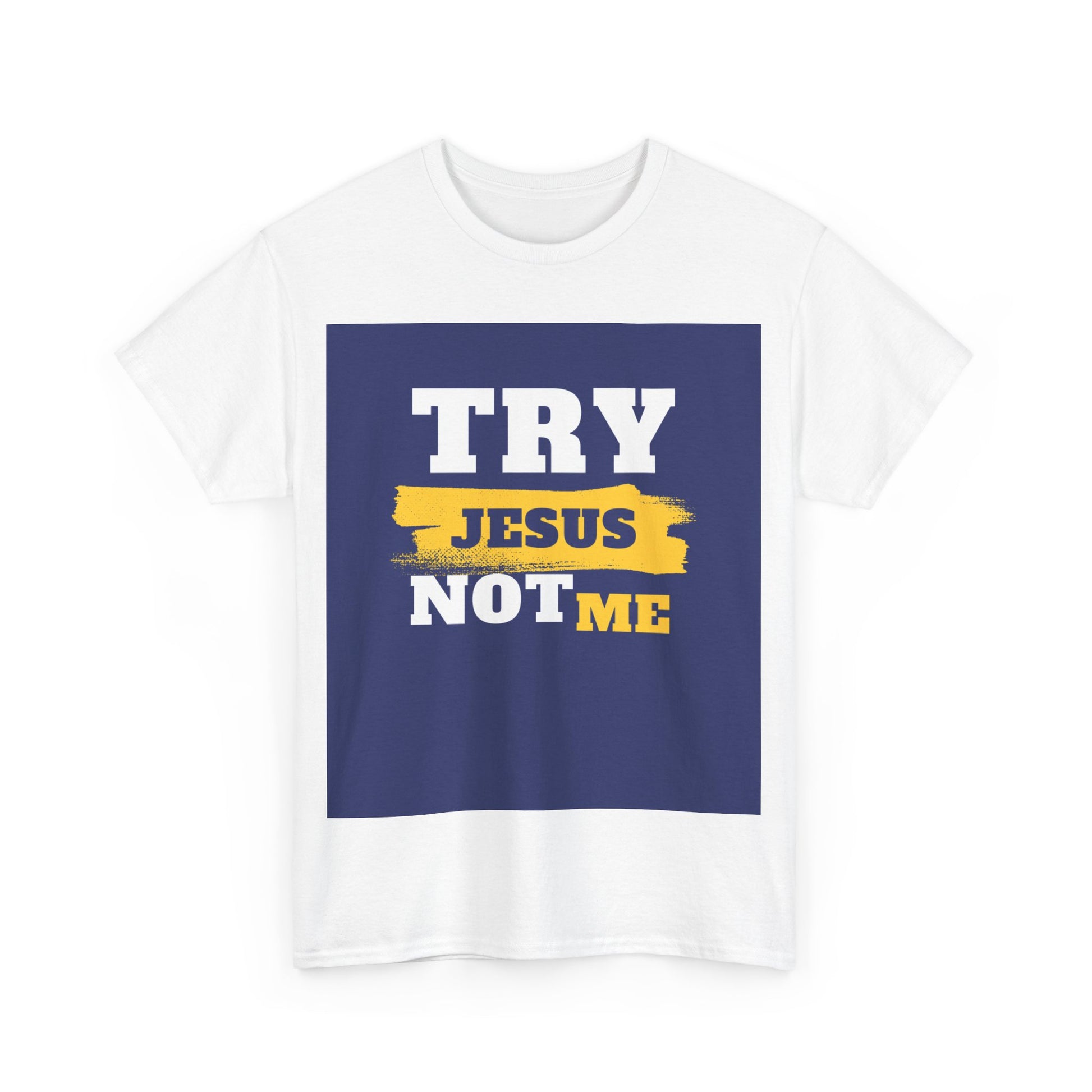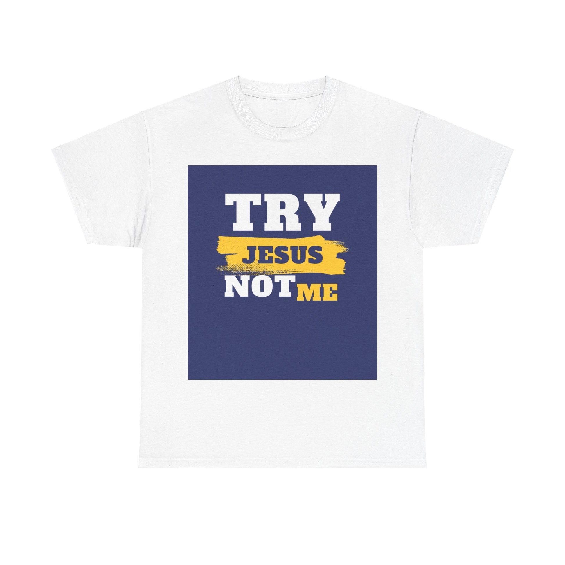 Send a powerful message with our 'Try Jesus Not Me' Tee. This bold and impactful design encourages you to embrace the teachings of Jesus. Wear it proudly as a reminder to let the grace of faith guide your path. Make a statement, make a choice – try Jesus.